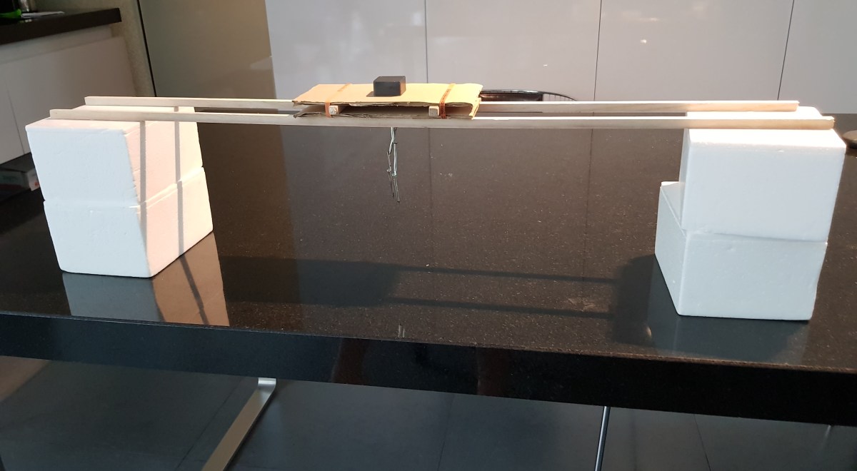 - Test materials were in turn slotted through the gap in the sandwich, one by one.