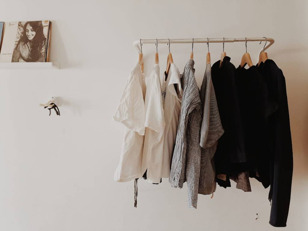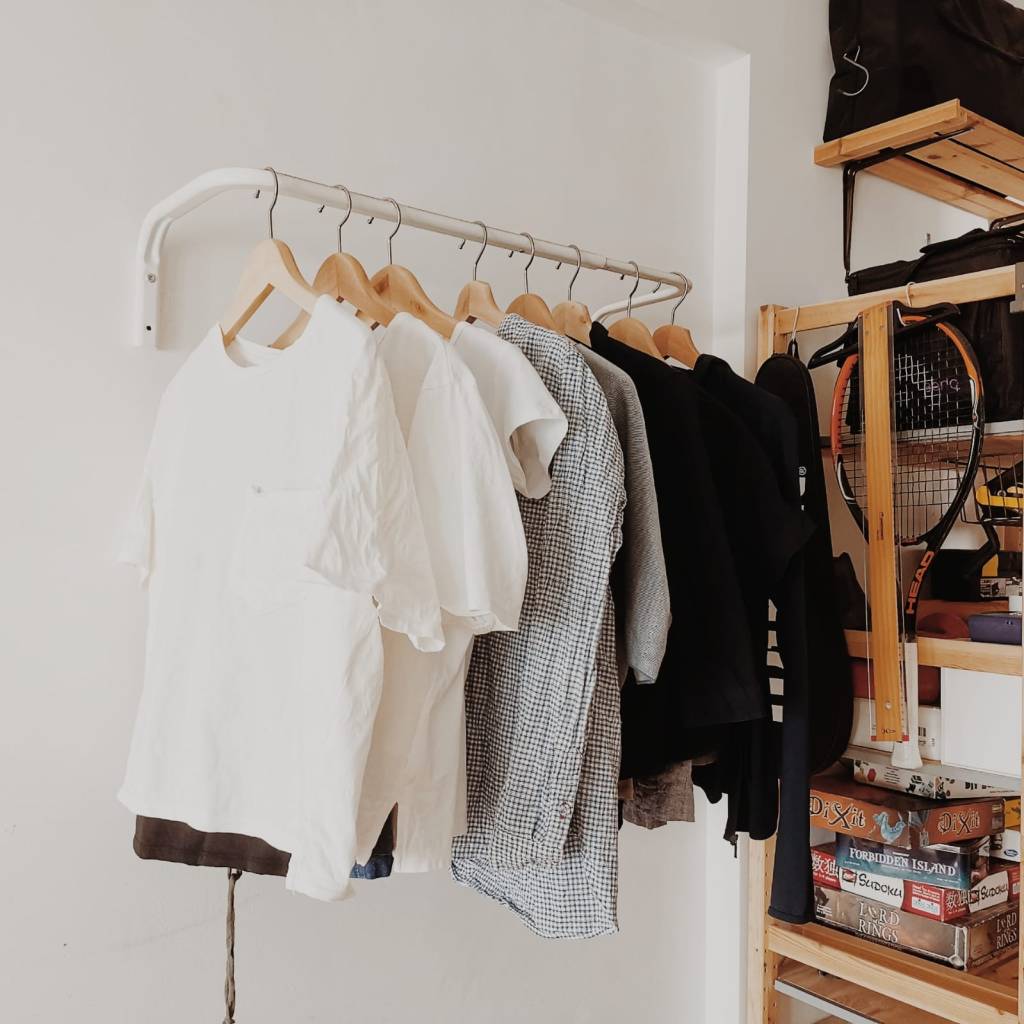All my clothes are hung there. Another way of cost saving is having very [few] things, avoiding unnecessary things. The more things you have, the more costly the time: you need to look after things and why would I want to spend time looking after things? I want to spend time looking after my family, so the [fewer] things I have to look after the better it is for me.